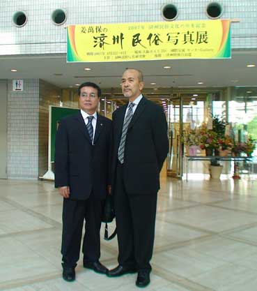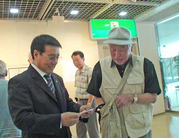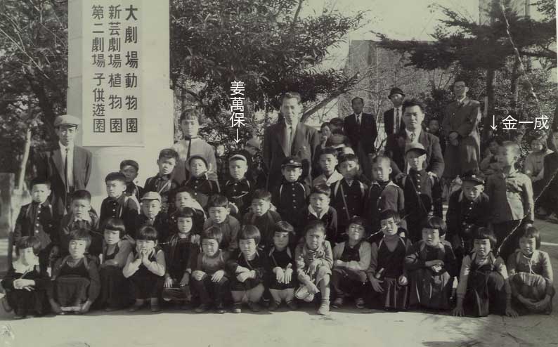 | 上の写真は今から約50年前の写真だ。宝塚へ遠足に行ったときの写真だ。 御幸森小学校へ通っていた姜萬保さんが持っていた写真。そこには同級生の金一成さんも写っている。姜さんは幼いとき、大阪生野で約5年間住んでいた。 この写真で、2000年に姜さんが日本へ済民日報の特派員として来たとき、二人は30数年ぶりに、再び会うことができた。 きょうも二人は会い、金さんは展示の手伝いをした。 左の写真は現在の二人だ。 |