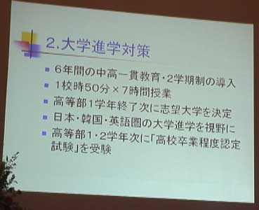 | 教育課程の概要を述べる庚泰成事務局長 | |||||||||||