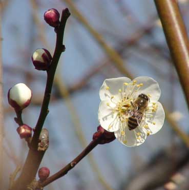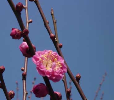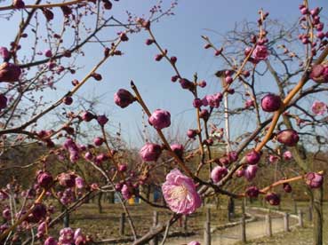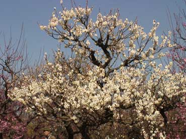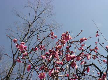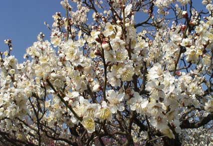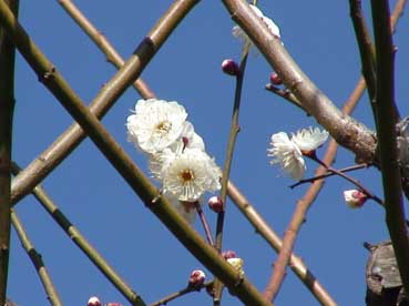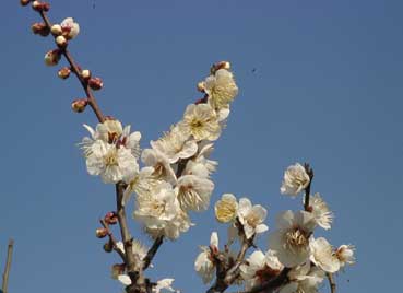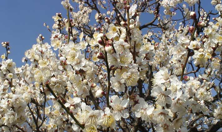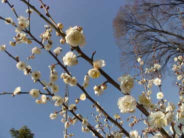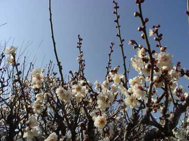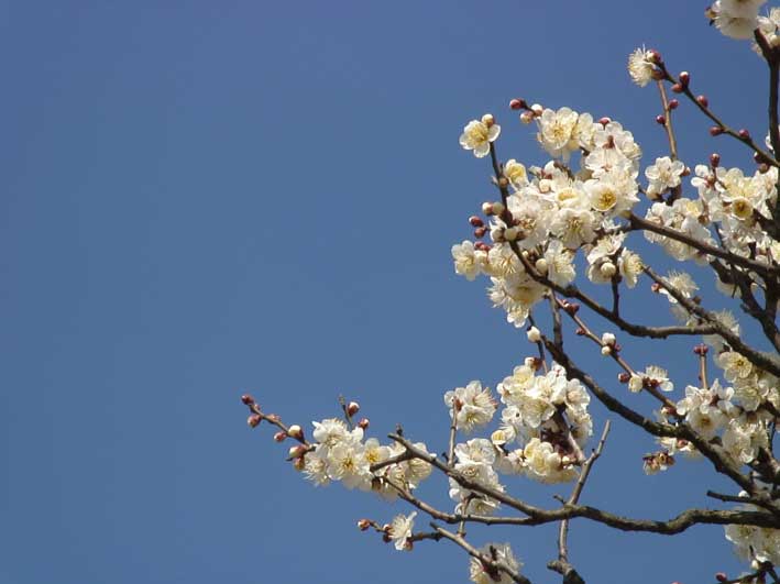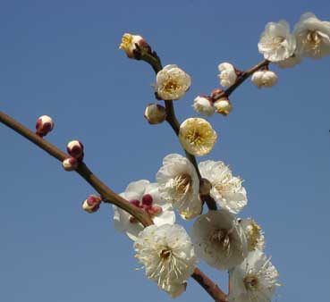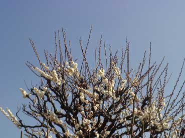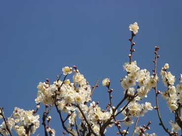 | 青い空と白い梅の花は対比して、綺麗だ。 | ||||||||