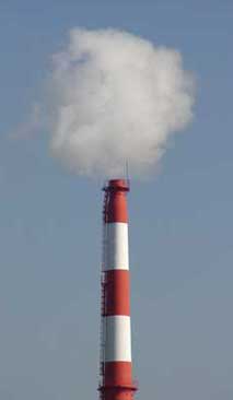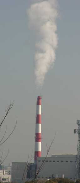 | 綺麗な空にモクモクと煙を吐き出す煙突。 空を汚さないで欲しいが。 |