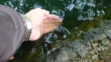 | この石にどうして水が溜まるのだろうか。さわってみるとひんやりとしている。 | |||||||||||||||||