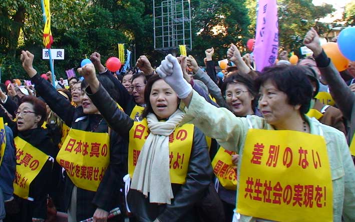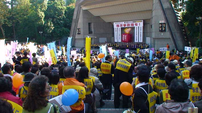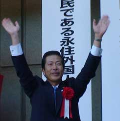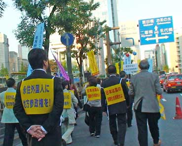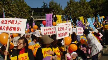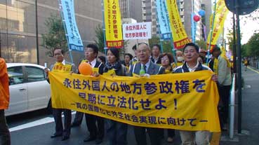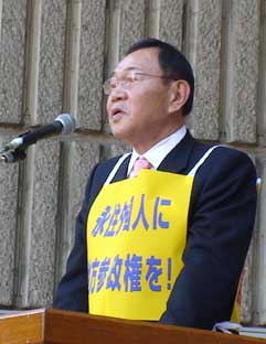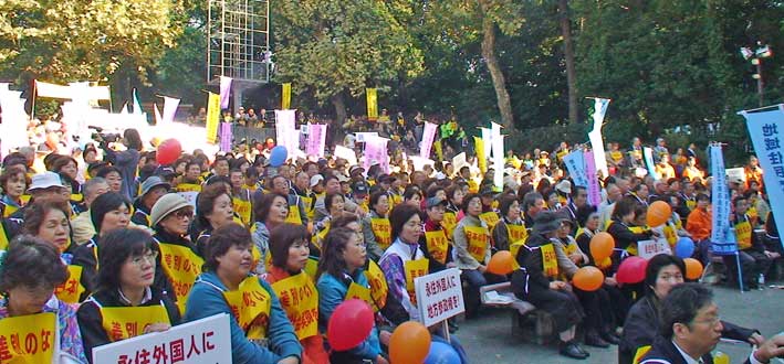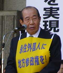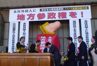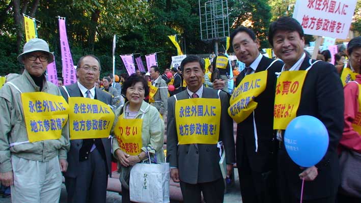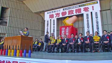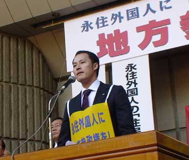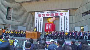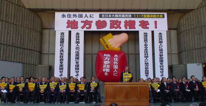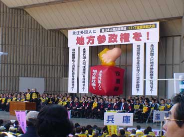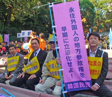 2007年11月7日、東京日比谷野外音楽堂で、民団の主催で永住外国人に地方参政権獲得を