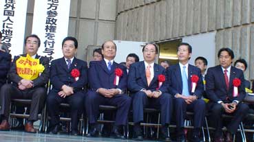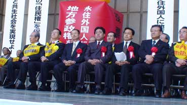 | 日本の政党、自民党、公明党、民主党、共産党、国民新党、などの各政党代表から「地方参政権に賛成」と激励の言葉を述べた。 | |||||||||||