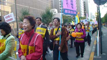 | 大阪韓国商工会議所役員と共に中澤さんも行進。 | |||||