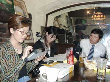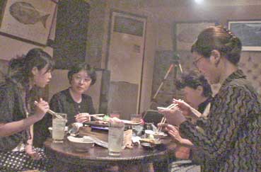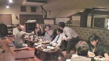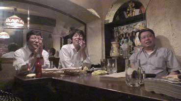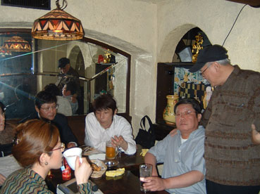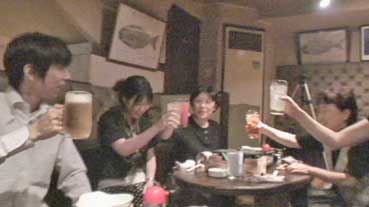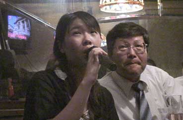 | 恒例のカラオケへ。しかし、カラオケではなく、近くの「乾杯」へ。ここにはカラオケもあって、みなさん、歌いました。 | ![]() |