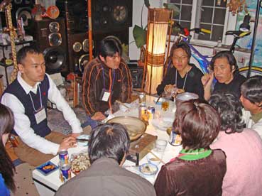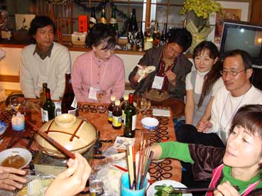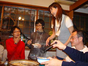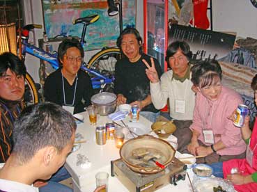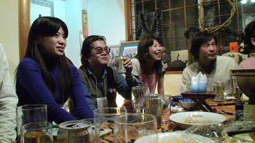 なんと約20人ぐらいの人たちが集まって、ナベやら囲んで飲んでいる。