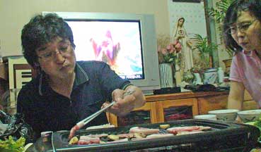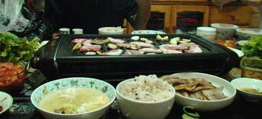 | おじさんの家は、古いアパートだ。 夕食にサムギョップサルを食べた。 |