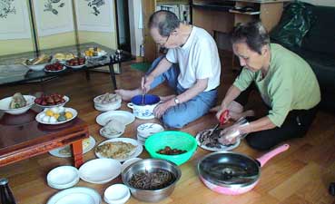 | おじさんとおばさんは供え物を準備する。 | |||||