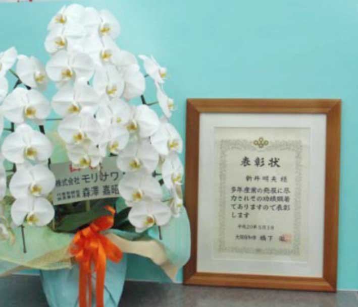 2008年6月25日、新井さんが大阪府の橋下知事から、長年組合活動をした事に対し、