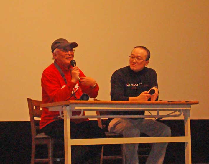 建国学校のフィルム上映後、対話をする。右はKINの金カンス映画祭実行委員長