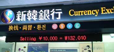 | 韓国ウオンに交換。1万円が13万2千ウオンだ。 | ||||||||||