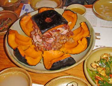 出てきた料理も、はじめて食べるもので、かぼちゃの中へアヒルを入れ蒸したものであった。