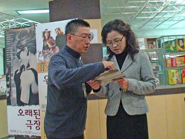 | シネマテークを管理している李ホジェさん。李さんは大阪生まれで、小学低学年まで大阪で通っていたという。 | |||||||