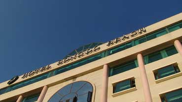 | ホテルの窓からあさ見る景色。 | 泊まったホテルは「ソンド・ビーチホテル」 | ||||