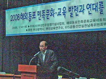 | 開幕式、司会進行はソ・ウンスク運営委員長 | 鄭スンチョン同胞ネット代表のあいさつ。 | |||||||