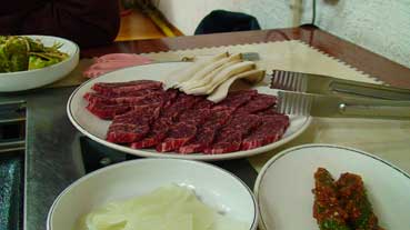 | 夕食に前回利用したユンボ食堂で焼肉を食べる。 | 「田中」さんが、ヨインスクを紹介してくれた。 | ||||||