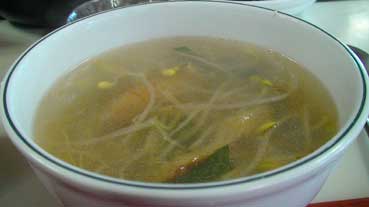 | 朝食にもやしの汁にご飯が出た。 | ||||
