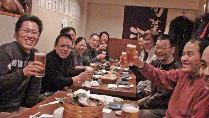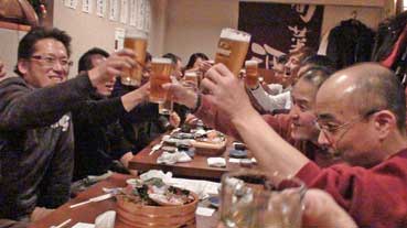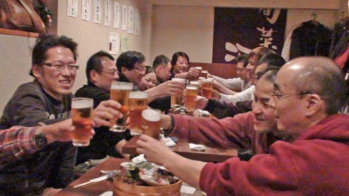 例会が終わって、忘年会だ。カンパイ!