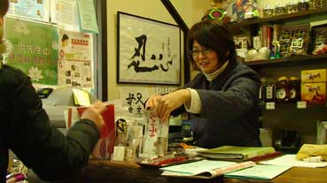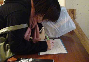 | 洪家ギャラリーでサインをする恵理さん。 | ||||||