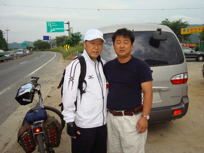 釜山に着いたら金さん夫妻が迎えに来ていた。金さんが運転する自動車に自転車をそのまま載せ、