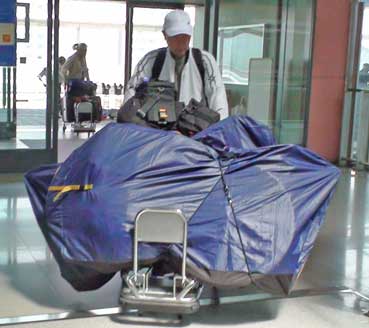 自転車は押し車に乗せて大韓航空カウンターへ