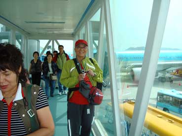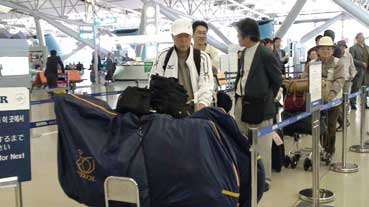 | 大韓航空のカウンターで荷物として預ける。新井さんのカバンもあわせて、40キロを7キロオーバーしたが追加料金はかからなかった。 | |||||||||