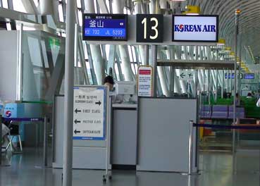 | 釜山行き大韓航空は13番カウンターだ。 | |||||||||