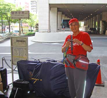 | 上六の関空行きバス停まで自転車に乗って行き、自転車は前輪を外し、輪行袋に入れて、バスに乗せた。 | |||||||||