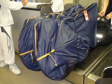 | 前輪だけ外し、うまく輪行袋に収まった。 | |||||||||