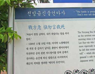 | 李舜臣が敵の銃弾に撃たれ死ぬ間際に残した言葉「私が死んだことは、まだ誰にもいうな」 | ||||