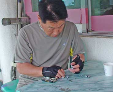 | うっかり私が自転車に乗ろうとしたとき、転げてバックミラーの片方、左側が折れてしまった。それを新井さんは右のミラーを左に付け替えてもらった。 | |||||