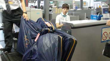 バス乗り場で自転車を輪行袋にいれ、バスに乗せ、関空へ。