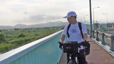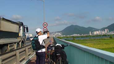 すぐ、洛東江大橋があったが、自動車専用道路で自転車が通れない。交番で訪ねたり、人に尋ねて、