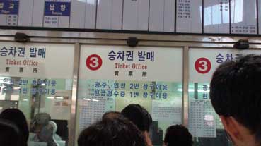 金海国際空港で、河東へ行くためのバスを探した。釜山西部バスターミナルから河東行きがある。