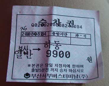| 一度トイレ休憩があった。 | 河東まで9900ウオンだ。 | |||||