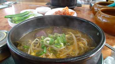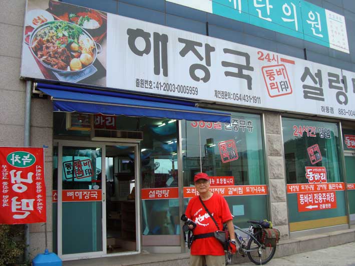 朝食はバスターミナル近くの食堂でヘジャンクックを食べる。これがこってりとボリュームたっぷりだ。