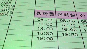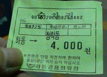 | 河東から青鶴洞までのバス料金は一人4,000ウオン。約1時間ぐらいで青鶴洞に着いた。