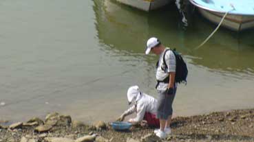 | アジュモニが捕ったシジミをきれいに選ぶ。 | ||||||
