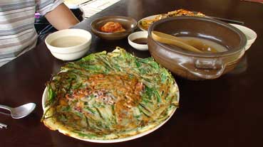 | シジャン(市場)で、トンドンジュとチジミを食べる | |||||