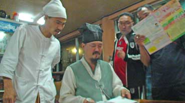 数人がやってきて歓迎してくれた。本当に男であるが、髪を伸ばし、ひげも生やして韓国服を着ていた。