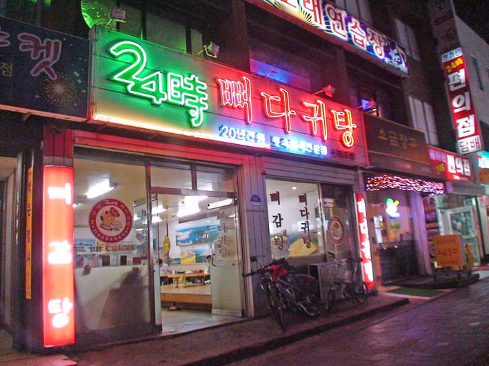 市外バスターミナル→新済州にある「24時・ピョタギ・タン」の店へ。