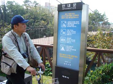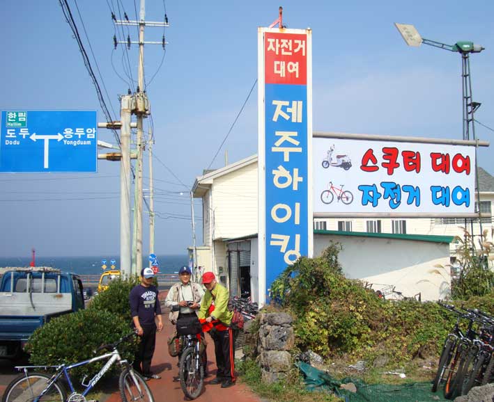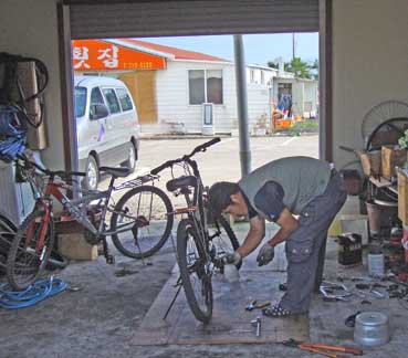 私の自転車が故障しているので、金吉浩さんに連絡を取り、済州での自転車屋を探すようお願いした。