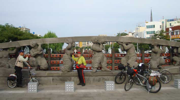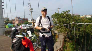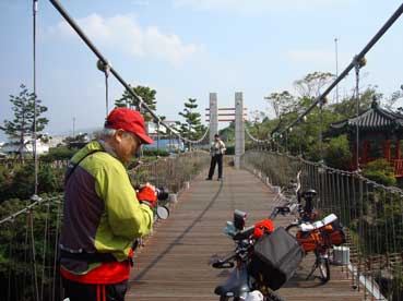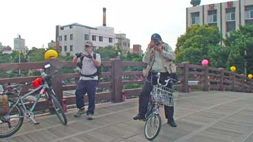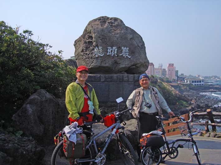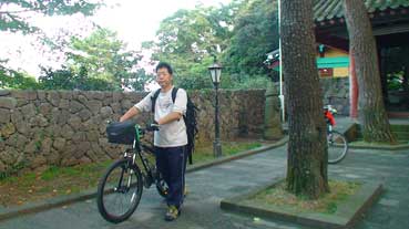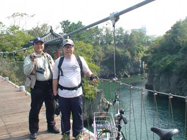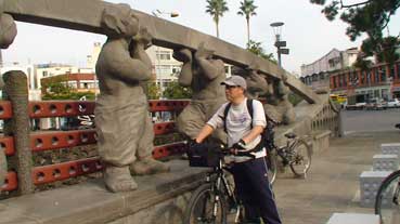 私たち3人は自転車を進めた。龍頭岩→龍淵歩道橋→山地川→東門市場→三姓穴→