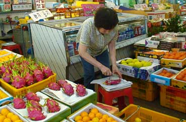 | 東門市場に寄った。珍しい果物、龍果を食べた。 | |||||