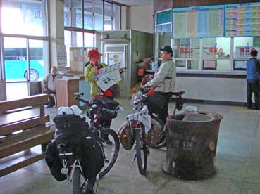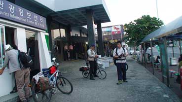 | 市外バスターミナルでバスを見たが、荷物を積むところは小さく、自転車を乗せるには狭い。済州島ではバスに自転車を乗せるには無理のようだ。 | |||