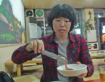| 「ピョタキ・タン」で呉スンチョルさんに会う。 | 金スニさん、秦記者にあう。 | ||||