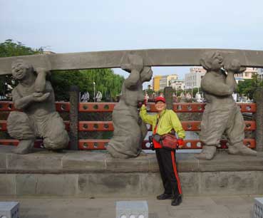 山地川の橋。おもしろい彫刻だ。