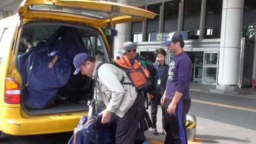 済州空港に着くと、自転車屋が車で迎えに来てくれた。
