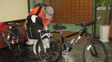私の自転車は前輪が曲がっていて、修理不能。前輪をレンタルして、進むことにした。