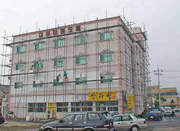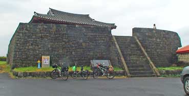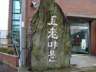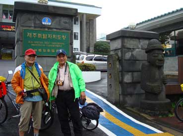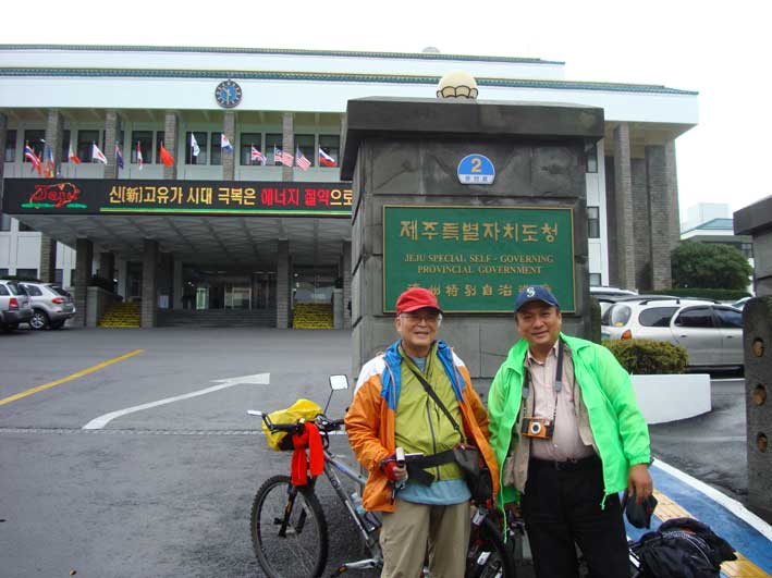 雨が大降りになってきた。済州市保健所で雨宿りをした。小降りになるのを待って、まだ進んでいった。